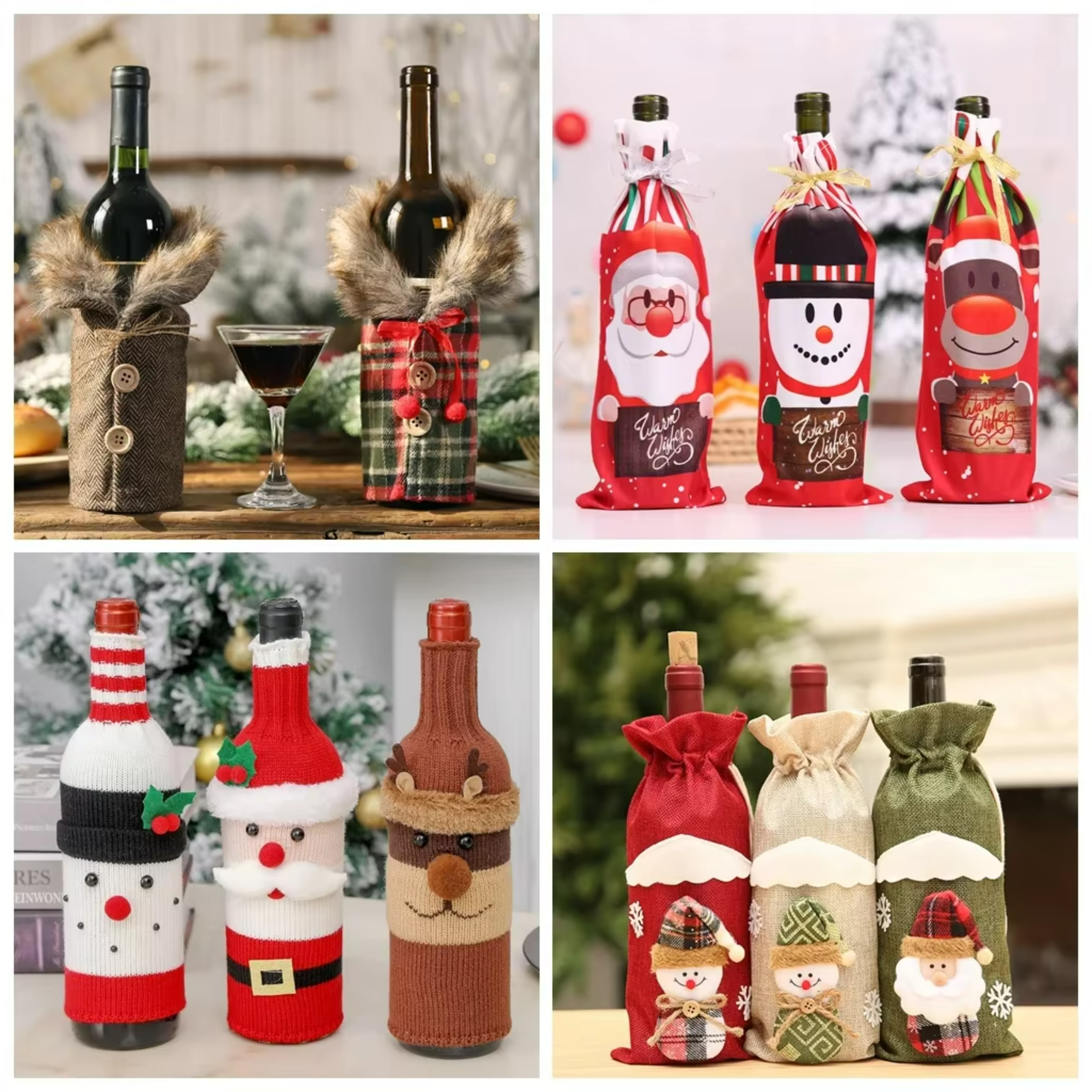 Christmas Santa Knitted Wine Bottle Case Elk Snowman Red Wine Champagne Bottle Cloth 2024 Merry Christmas Decor Happy New Year